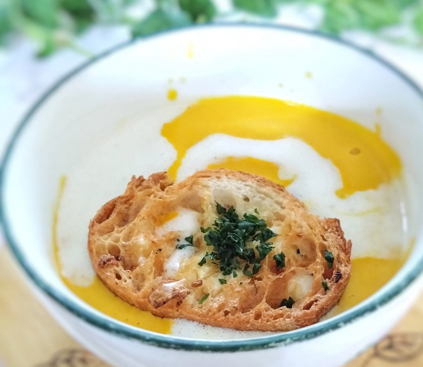 クリーミーでとっても滑らか、お家で作ると かぼちゃの旨味と甘みが堪能できますョ。