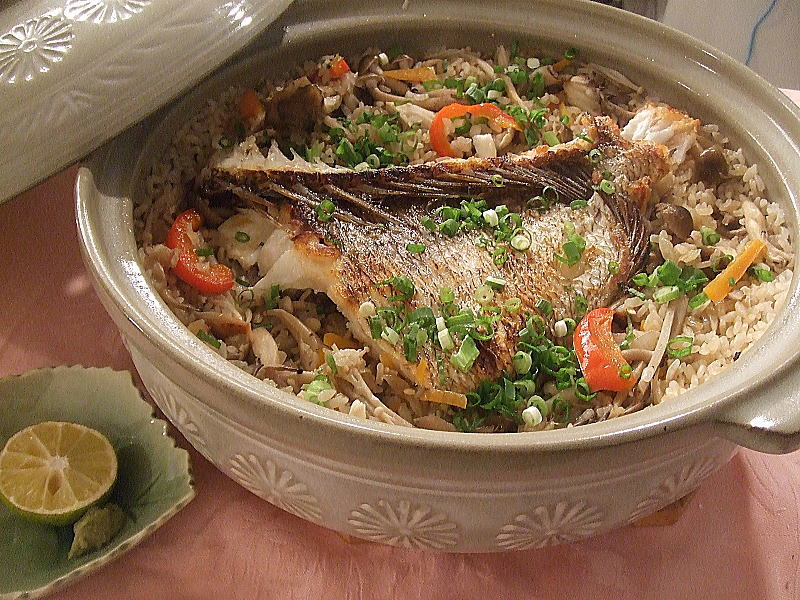 鯛めしとパエリア、和とイタリアンのコラボ飯です。